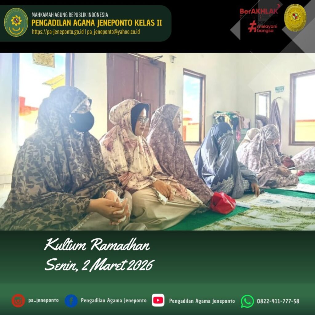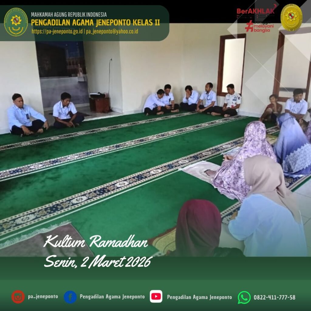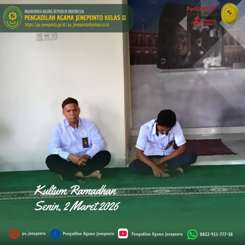 Kultum hari ini Senin, Ba’da Dhuhur dengan pembawa acara Ahmad. B., dibawakan oleh Abdul Muiz, S.H.I.,M.H., ini menyampaikan Alhamdulillahi rabbil ‘alamin, segala puji bagi Allah SWT yang masih memberikan kita nikmat iman, Islam, dan kesempatan untuk berkumpul dalam majelis yang penuh berkah ini.