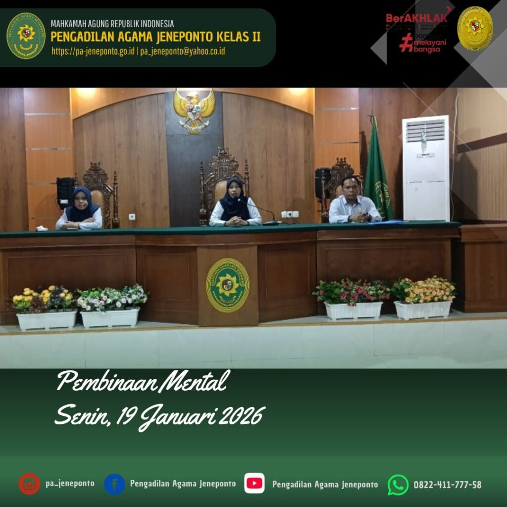 Rapat pembinaan mental dan pembinaan umum aparatur, melalui kegiatan pembinaan ini, seluruh aparatur Pengadilan Agama Jeneponto diharapkan :
